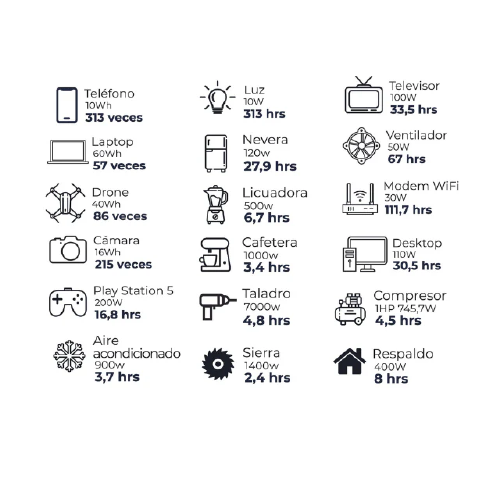 Con DELTA Pro olvidese de los cortes o fallos electricos inesperados en su casa, finca o negocio, con sus numerosas opciones de conexión y carga esta planta de energía portátil es un todoterreno versátil que brinda un gran respaldo con su capacidad de 3600Wh, potencia nominal de 3600W y la potencia máxima de 4500W el DELTA Pro puede suministrar energía a casi cualquier dispositivo como electrodomésticos, luces, herramientas electricas e incluso motores electricos de hasta 1HP.